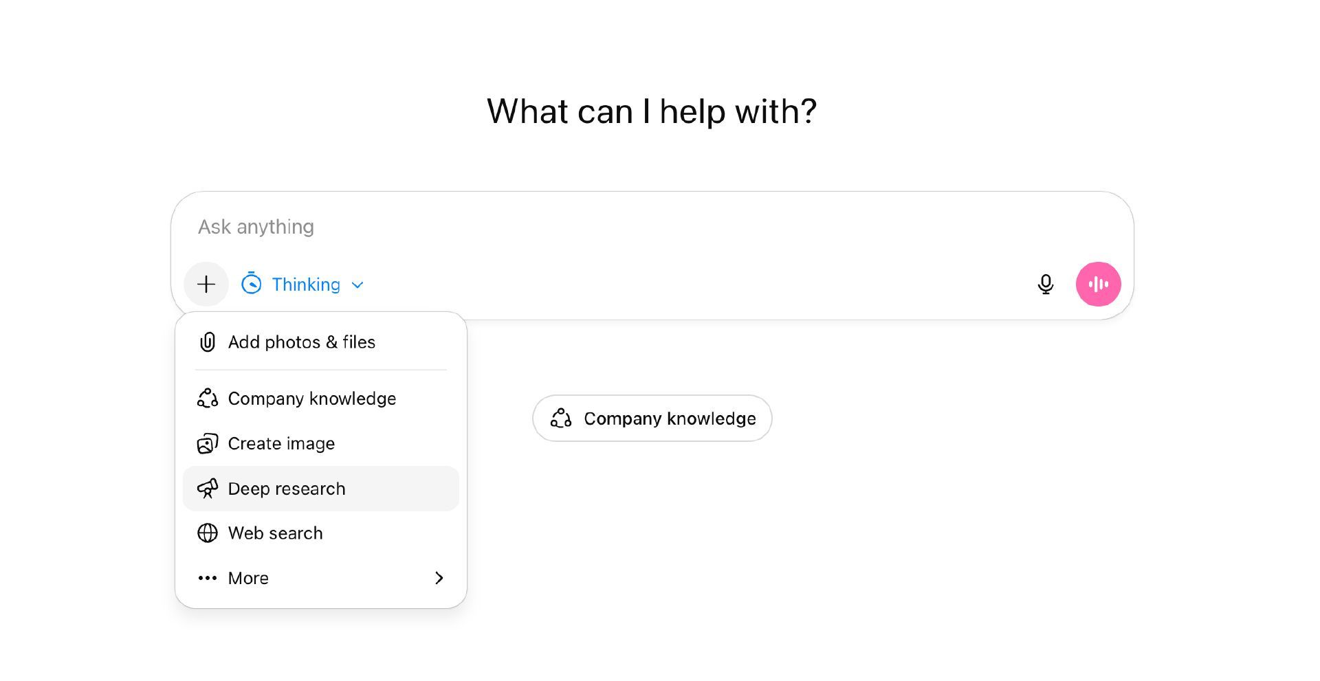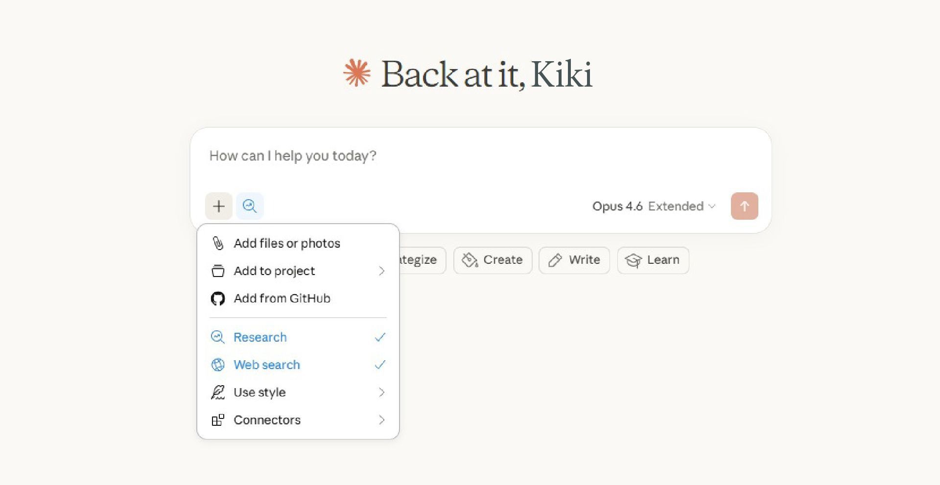 - Kies Deep Research als tool door binnen een chat op het plusje te klikken.